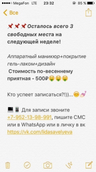 Девочки, каждый раз  перед записью  (ориентировочно за сутки!!!) я отправляю вам так называемую СМС-напоминалку.