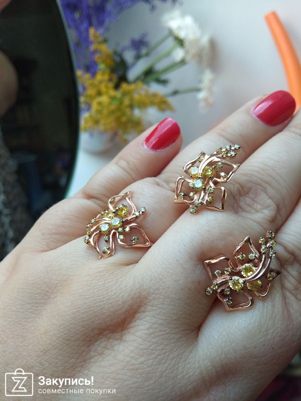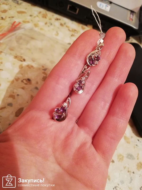 Добавлю комментарий. Серьги к данному кольцу (на сайте их нет) выкупили лично у фабрики. Обошлось это нам в 1500 руб с пересылкой...... Это к вопросу о том, насколько выгодно покупать здесь. Но очень хотелось серьги. Поэтому других вариантов у нас не было. (серьги очень красивые. На сайте есть только с фиолетовым камнем).