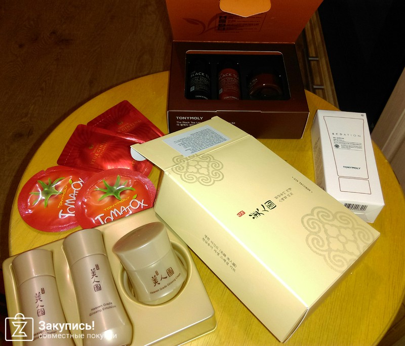 Набор TonyMoly Черный чай - тонер, лосьон и крем - суперский, хорошо увлажняет, запах ненавязчивый, кожа после него напитанная, упругая. Второй набор The FaceShop тоже понравился, но запах у крема специфический, сильно пахнет травками, нужно привыкнуть. Только ББ TonyMoly - не очень понравился, жидкий, на лице заметен, нужно как то приспособиться наносить. Маски помидорки раньше уже заказывала, они всем нравятся.