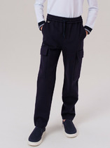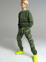 Брюки для мальчика из French Terry. Модель дополнена регулируемым поясом со шнурком. Манжеты по низу брюк в эластичный рубчик.