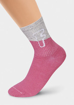 Носки для девочки с контрастными полосами на паголенке и надписью.— Описание у На сайте поставщика