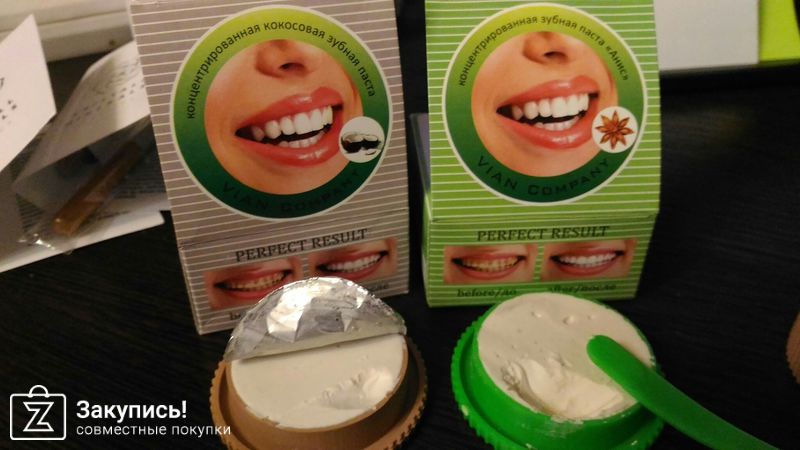 Заказывала две пасты - Анис и Кокосовую. Попробовала обе (не удержалась)), но активно использую Анис. Паста понравилась, не знаю как по лечебным свойствам, нет особых проблем с зубами, деснами, но эффект отбеливания есть - чему я очень рада. Сначала было непривычно, паста так и норовила соскочить в раковину, вкус и запах не понравился, сильный ментоловый, или камфора еще такой вкус и запах дает термоядерный. Но спустя время приспособилась, ко вкусу привыкла, и результат радует. Кокосовая паста - мягче на вкус, чистит так же хорошо, про эффект не напишу, так как попробовала один раз почистить, пока анисовая в использовании. Есть желание заказать и другие , да и на подарок я думаю отличный вариант. По составу - состав натуральный, правда смущает в конце анионный ПАВ, который бывает нескольких видов, от более менее безопасных до вредных. Надеюсь в нашей пасте все таки менее вредный ПАВ! Спасибо за закупку организатору))