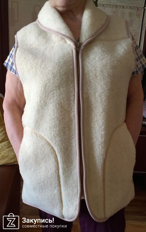 Изделием довольна. Понравилась и изнаночная сторона. Оконтовка выполнена трикотажной мягкой полоской. Жилет имеет запах шерсти, при проверки горением есть и запах рога и нет комочка.