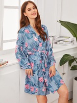 Халат с поясом и тропическим принтом