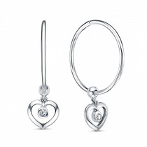Серьги с фианитом родированные серебро 925*