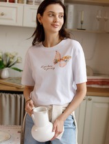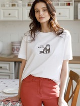 Свободная футболка с V-вырезом и цельнокроеным рукавом из 100% хлопка с принтом