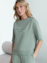 Свободный топ с V-вырезом и цельнокроеным коротким рукавом изо льна с вискозой