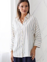 Блузка свободного силуэта в полоску с рукавом 3/4 из эластичного хлопка