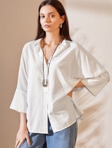 Блузка свободного силуэта с рукавом 3/4 из эластичного хлопка