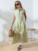 Длинное платье-рубашка с поясом и разрезами изо льна с вискозой