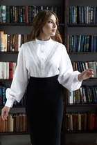 Особой нашей гордостью являются лекала. Конструкции разработаны с учетом особенностей российских фигур. Все блузки с отличной посадкой и комфортной шириной рукавов. Мы отшиваем блузки на рост 164 см. Если рост отличается от указанного более 5 см, пожалуйста, указывайте это в комментариях к заказу, и мы отошьем нужную Вам ростовку.