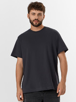 Фуфайка с коротким рукавом среднего объема, круглым вырезом горловины, которая оформлена обтачкой из рибаны.