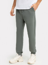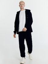 Брюки на манжетах с отрезным поясом из кашкорсе, двумя карманами в боковых швах.