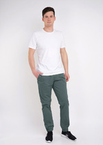 Брюки на манжетах с отрезным поясом из кашкорсе, двумя карманами в боковых швах.— Описание у На сайте поставщика