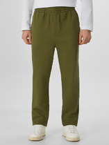 Брюки с отрезным поясом из кашкорсе, двумя карманами в боковых швах и одним накладным карманом сзади.— Описание у На сайте поставщика