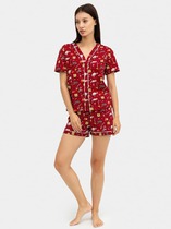 Женские домашние шорты из набивного хлопкового полотна. Пояс на резинке, спереди выполнены карманы с отрезным бочком.