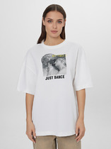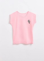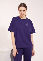 Джемпер из хлопкового трикотажного полотна. Короткий втачной рукав. Круглый вырез горловины. По переду принт.