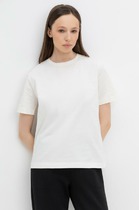 Укороченная футболка с втачным рукавом из кулирной глади. Модель универсального базового цвета с буквенным принтом.— Описание у На сайте поставщика