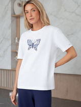 Vilatte Футболка из премиального хлопка с авторским принтом D49.983 белый_flower