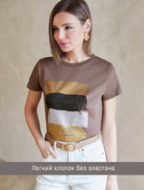 Vilatte Нарядная футболка с принтом фольгой из премиального хлопка с эластаном D