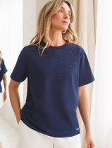 Vilatte Футболка из премиального хлопка с принтом фольгой D49.098 т.синий_стразы