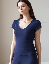 Vilatte Футболка с V вырезом из фактурного трикотажа в рубчик D49.150 т.синий