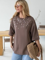 Vilatte Футболка оверсайз с принтом стразами из премиального хлопка с эластаном