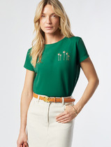 Акция Vilatte Футболка из эластичного хлопка с принтом стразы D49.097 зеленый_п