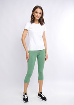 Леггинсы женские укороченные из плотного эластичного трикотажного полотна. Отрезной пояс.— Описание у На сайте поставщика