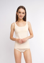 Майка на широкой бретели из трикотажного полотна "интерлок". Горловина, пройма и низ изделия открытые срезы— Описание у На сайте поставщика