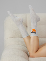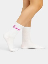 рис.2868 Женский носок с высоким плотным бортом, а также с рисунком в виде надписи и кота.— Описание у На сайте поставщика