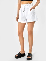 Удлиненные женские шорты из смесового льна с удобными боковыми карманами и резинкой по поясу