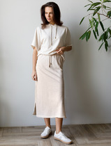 Акция Vilatte Юбка из тончайшего футера на резинке и отделкой с открытыми среза