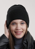 Женская двойная шапка, декорирована нашивкой логотип. Подойдёт для холодной осени- тёплой зимы.— Описание у На сайте поставщика