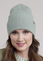 Шапка женская с отворотом, без подклада. Декорирована стильной нашивкой.— Описание у На сайте поставщика