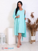 Трикотажный комплект с принтом, халат и сорочка мятный КМ-14(1)