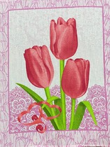 Полотенце вафельное БУКЕТ БМ РОЗОВЫЙ - тюльпаны р 50х60