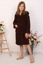 Халат подростковый махровый "Элит" с капюшоном, цвет: 915-Горький шоколад, р. 15