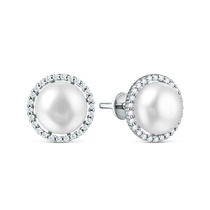 Серьги-пусеты из серебра с культивированным жемчугом и фианитами родированные Z2