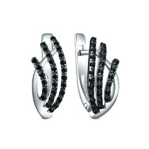 Серьги из серебра с бриллиантами и плавленым кварцем родированные 925 пробы 2-43