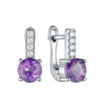 Серьги из серебра с аметистом и кубическим цирконием родированные 925 пробы GTE-