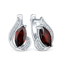 Серьги из серебра с натуральным гранатом и кубическим цирконием родированные 925
