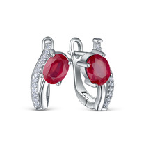 Серьги из серебра с рубином и кубическим цирконием родированные 925 пробы GTE-46