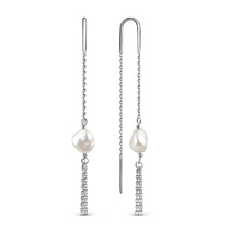 Серьги-продёвки из родированного серебра с культивированным жемчугом барокко 925