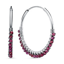 Серьги-продёвки из серебра с натуральным гранатом родированные 925 пробы 15864GR