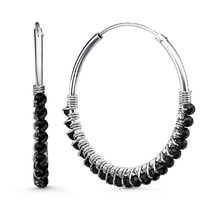 Серьги-продёвки из серебра с фианитами родированные - 6,5 см 925 пробы 111039_00