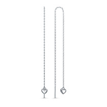Серьги-продёвки из серебра родированные - Сердца (длина всего изделия 18 см) 925