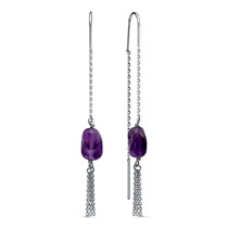 Серьги-продёвки из родированного серебра с аметистом 925 пробы 15591AMRH