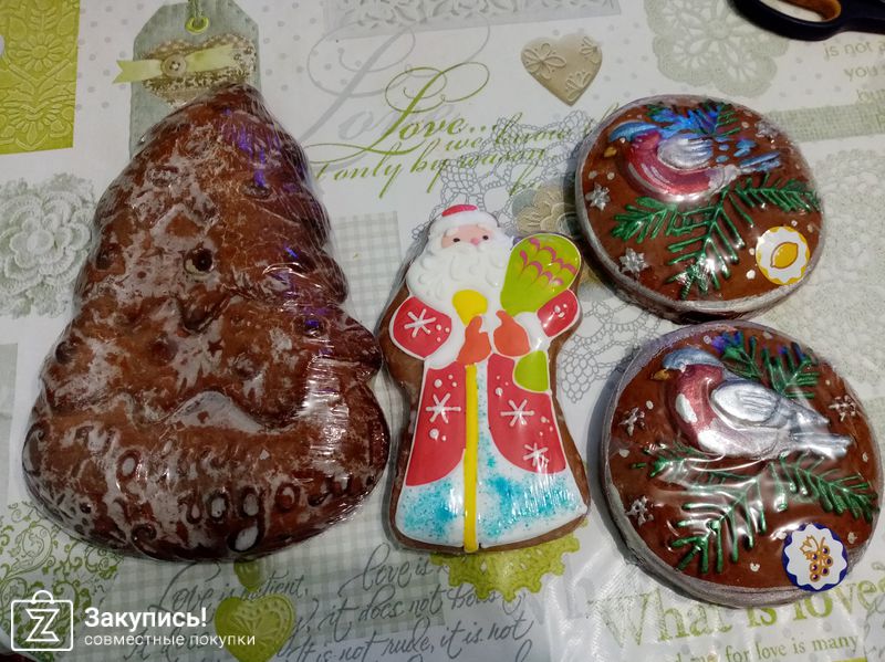 Пряники все свежие, вкусные. Пока попробовали только с вареной сгущенкой и грецким орехом и с цветной глазурью. Цветные расписные очень эффектные, красивые, но очень сладкие. Сладкоежкам пойдет, мы не смогли , так как сахар и сладкое едим очень умеренно. Вроде мягкий, пахнет умопомрачительно вкусно, но больше малюсенького кусочка, съесть трудно, из- за толстого слоя сахарной глазури. Поэтому простые печатные понравились гораздо больше.