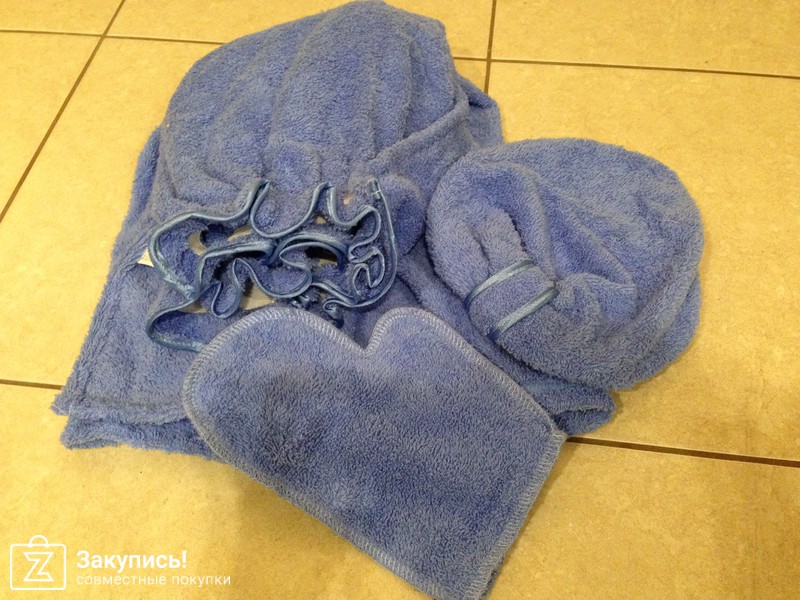 Заказывала укороченный махровый халат с капюшоном. Он такой, как я и представляла. Я специально брала махровый, а не велюровый, чтобы был натуральный хлопок. Размер - норм, цвет приятный. К телу чуть жестковат (это все-таки махра), но после стирки с кондиционером будет мяконьким.